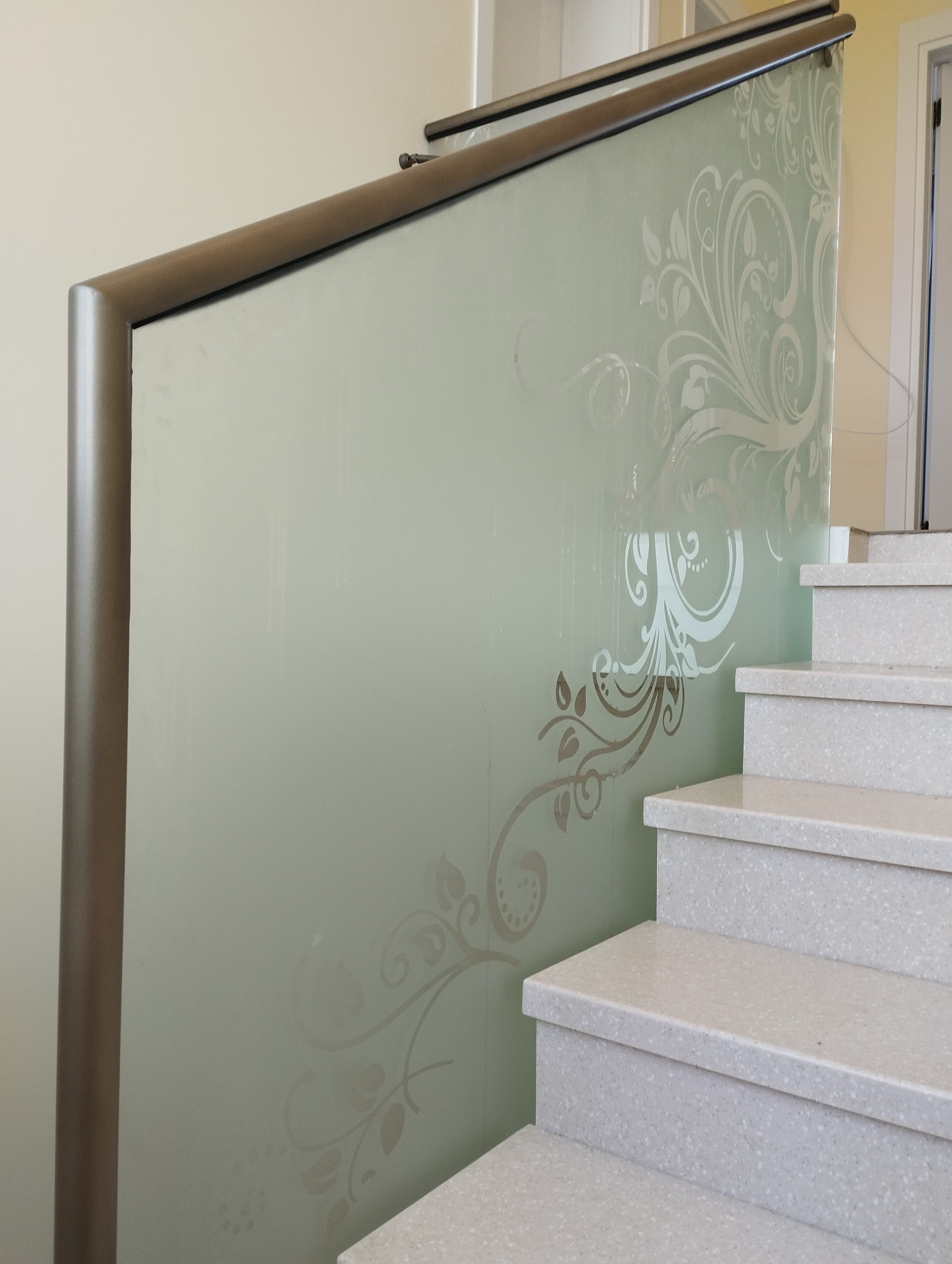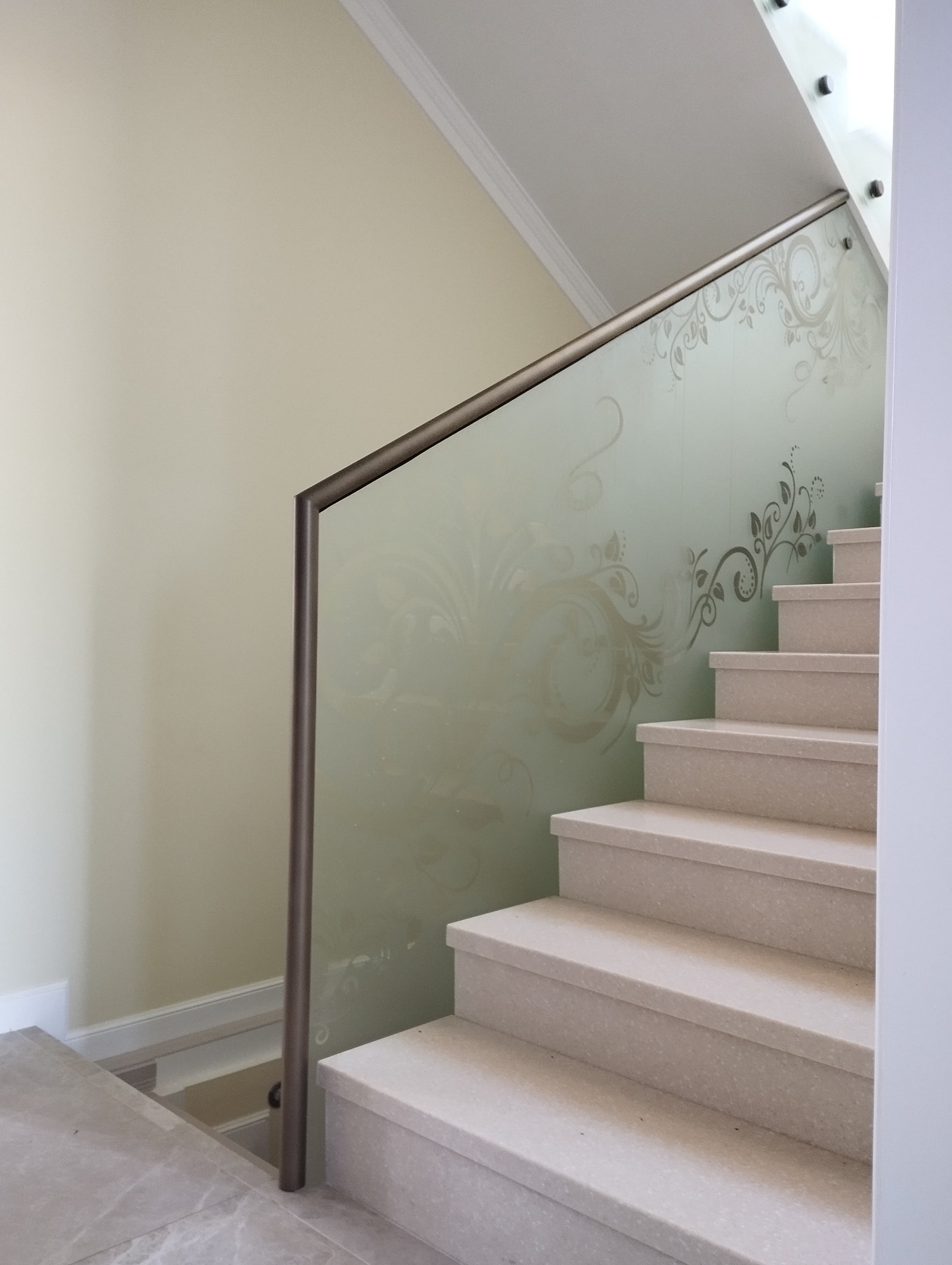 Основа такого ограждения - опорный зажимной профиль. Он крепится к полу, лестнице или металлоконструкции и надежно зажимает стекло.